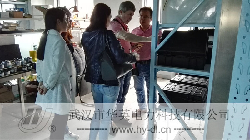 在总经理王兰芳的热情接见下,两位客户先后参观了仪器检验部门、研发部门、产品生产车间及仓库等地。交谈中,两位客户对于我司自主研发生产的HYRZ-902变压器绕组变形测试仪、HYLB-601便携式波形记录仪、HYVA-405CT/PT分析仪等产品做了详细了解。因ELECTROMASH公司生产类似测试仪的缘故,IsaevKamalpasha先生在生产车间仔细观看了仪器的生产过程。并把俄国与中国的生产过程的不同之处与王总进行了意见交换。